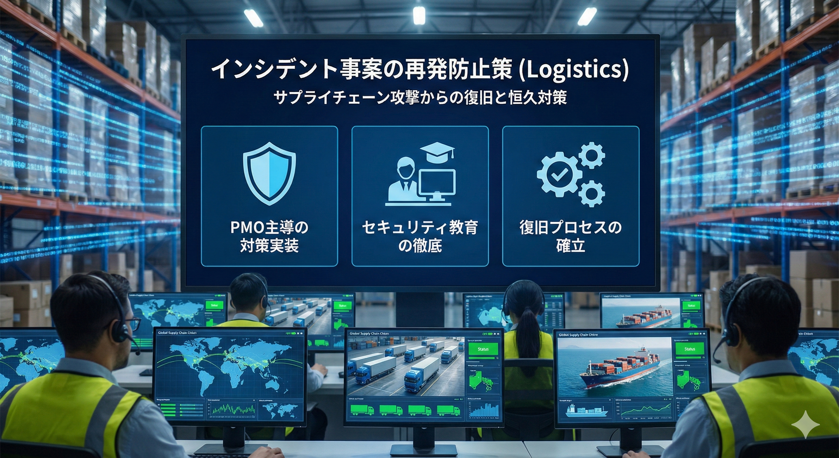 大手物流企業において、サプライチェーン攻撃による不正アクセスインシデントが発生し、システム停止を余儀なくされました。早急なサービスの復旧と、経営課題としての抜本的なセキュリティ強化が求められていました。